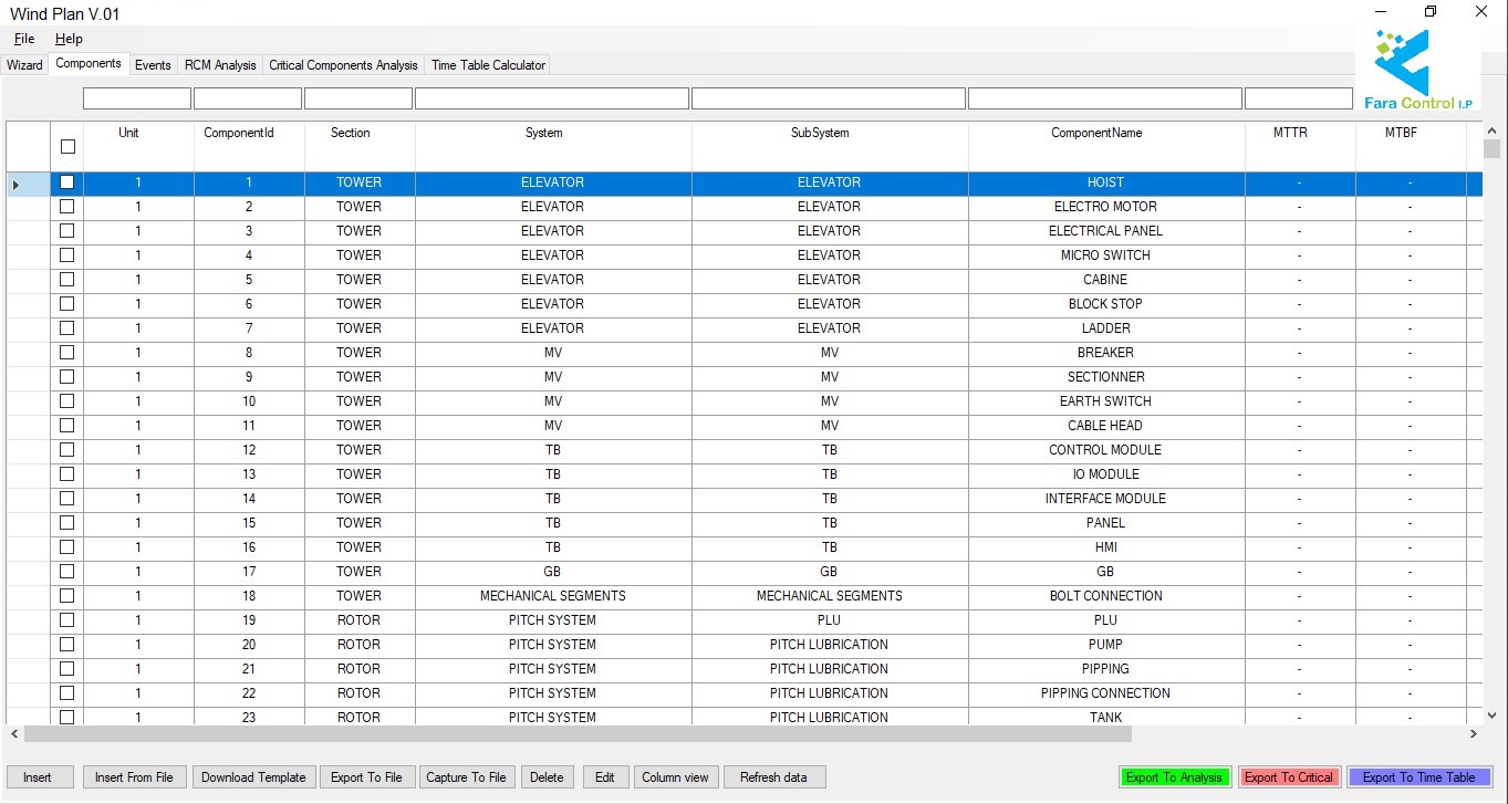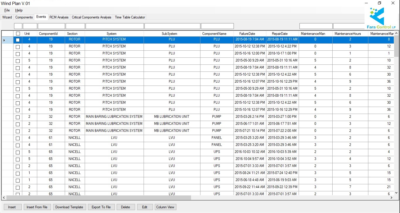- Reduce the unscheduled down time, availability and reliability increase of the wind farm (Providing a comparative report on the stoppage time in terms of using software outputs under normal operating conditions).